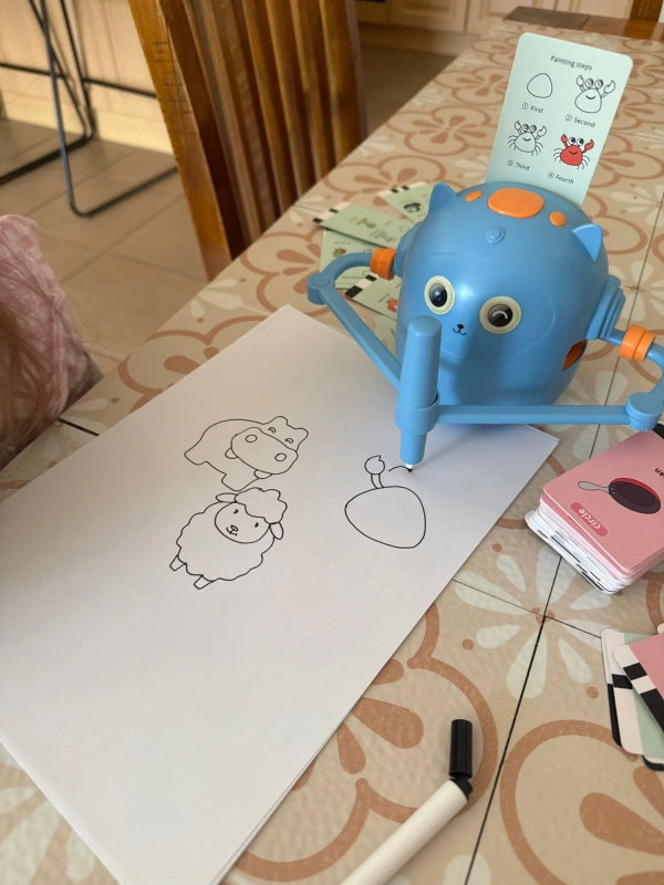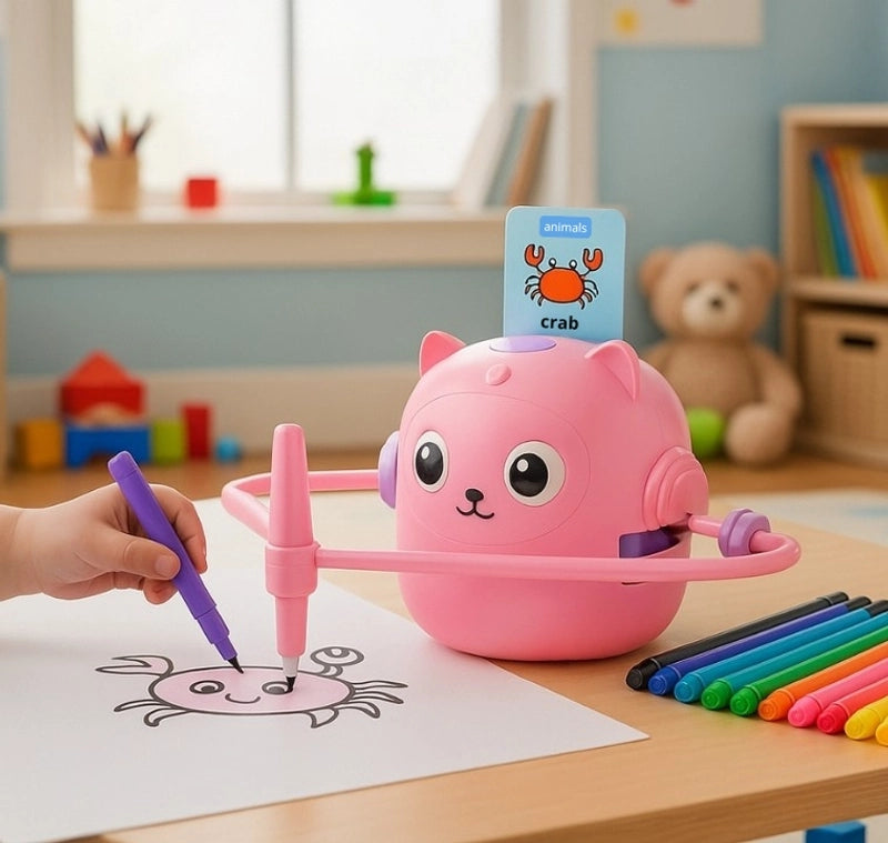 RysoBot to nie tylko robot! To nauczyciel, który krok po kroku prowadzi dziecko przez proces rysowania, rozwijając koordynację i koncentrację w rytm wesołej muzyki.